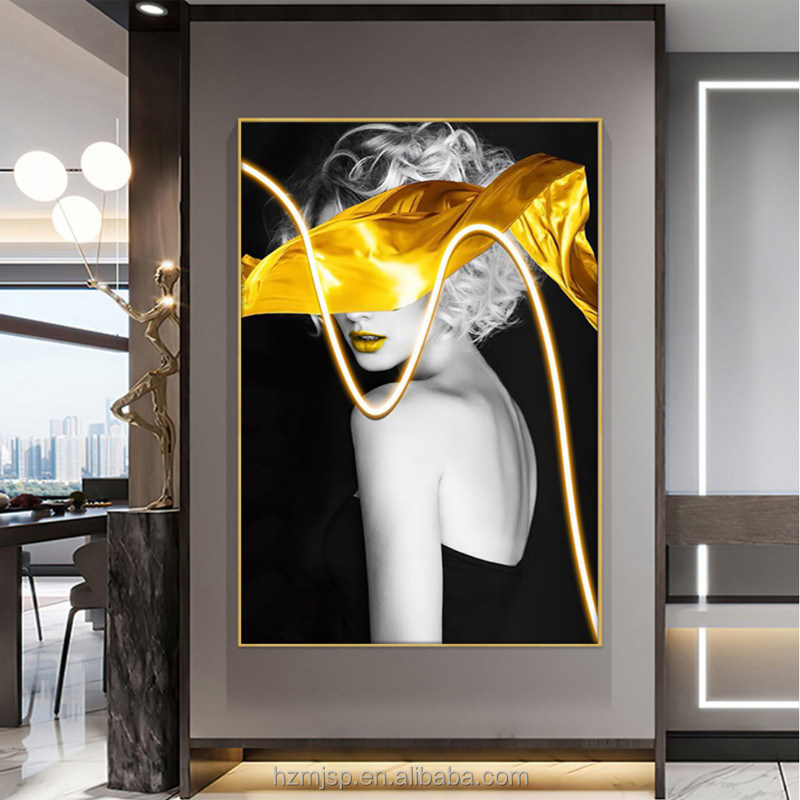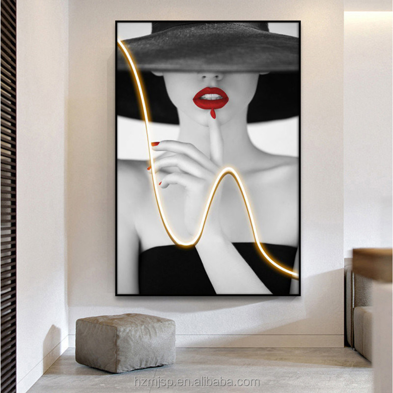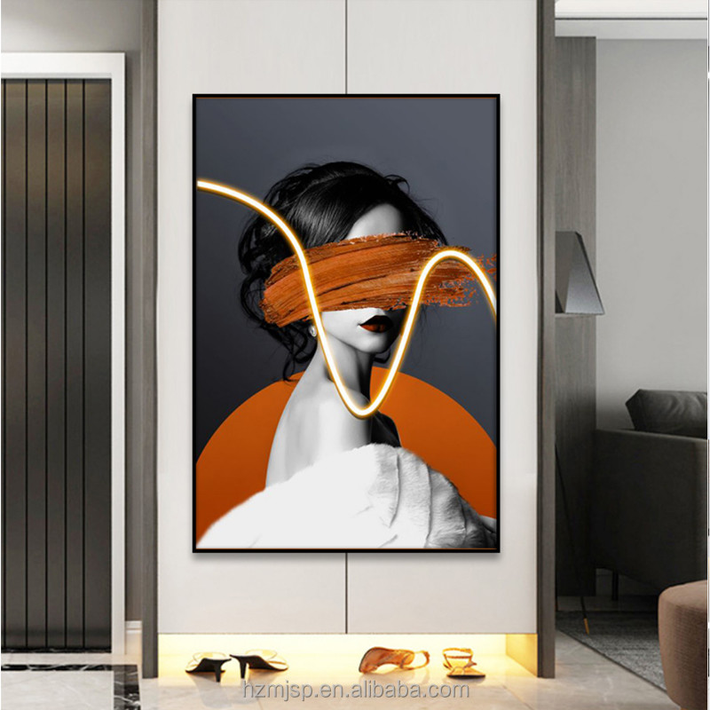 Phong cách hiện đại Lối vào trang trí chiếu sáng Bức tranh tường Nghệ thuật chân dung ánh sáng Bảng ảnh được in trên vải với sơn LED 3D